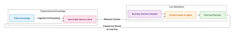 We've built a Memory Layer that transforms tribal knowledge into contextual intelligence for AI agents, following a clear pipeline: documents (codified procedures) get ingested and chunked, memories are created with rich metadata, and reasoning nodes retrieve relevant context to make informed decisions.