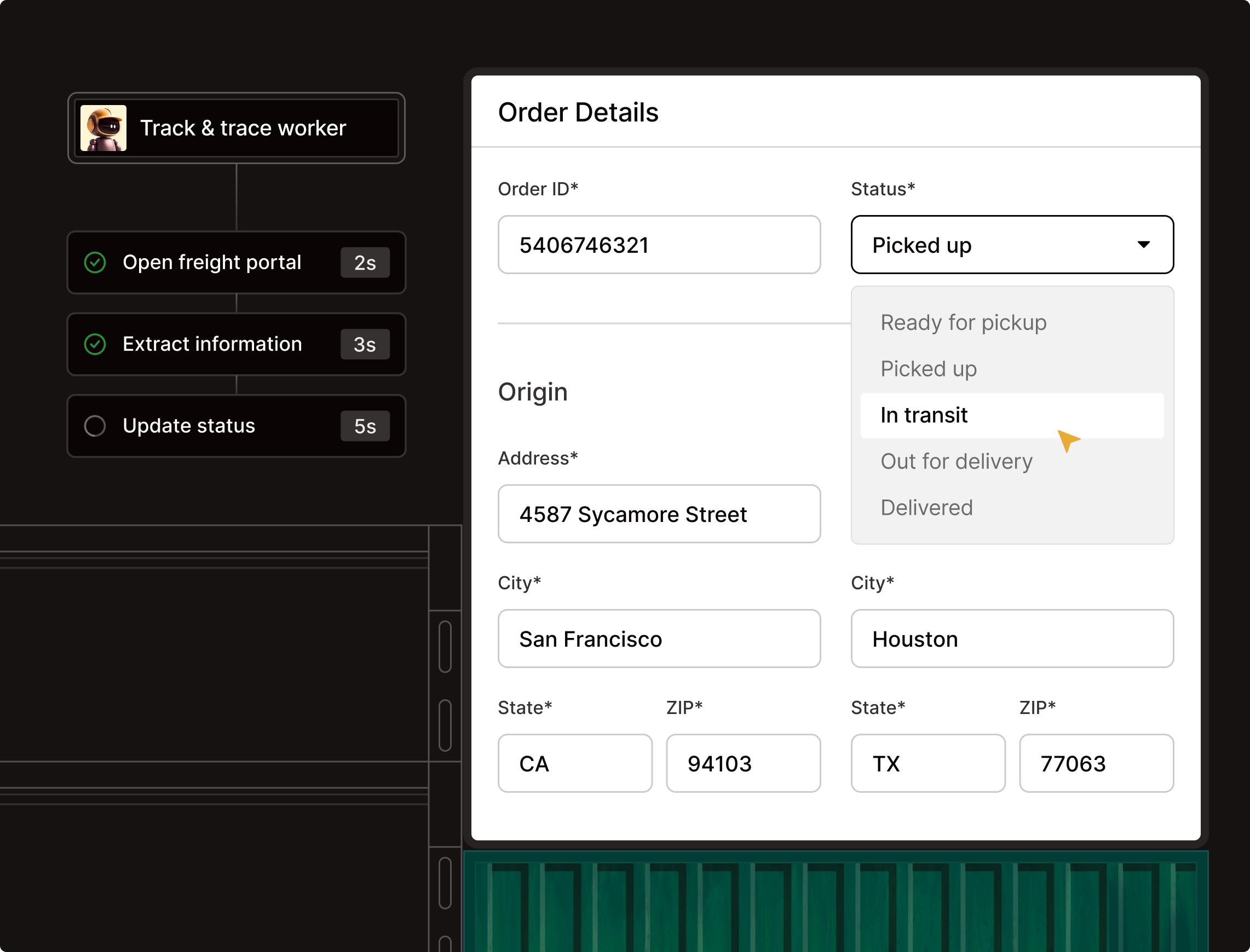 Human logistics experts stay in the loop to catch edge cases, monitor quality, and step in when needed. You get speed at scale with the oversight to trust every task gets done right.