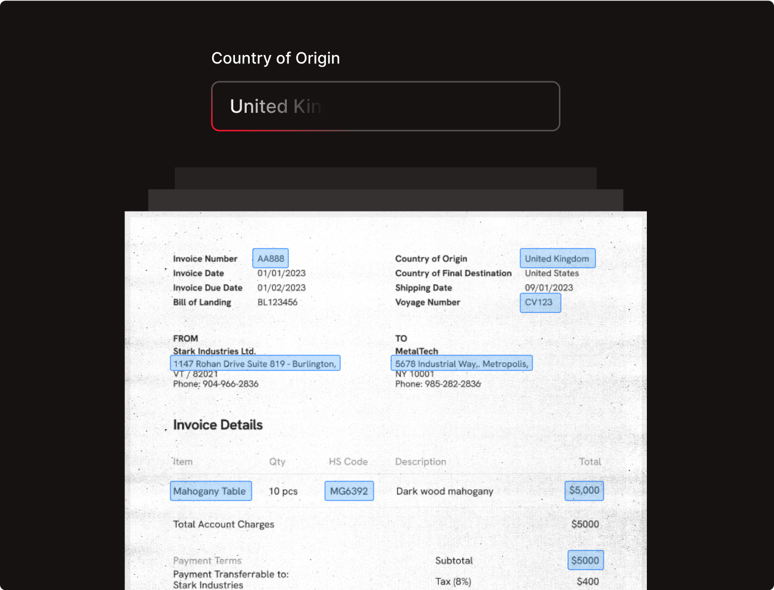 Request docs such as commercial invoices. Extract the data into CargoWise, Magaya, or any other customs tool.